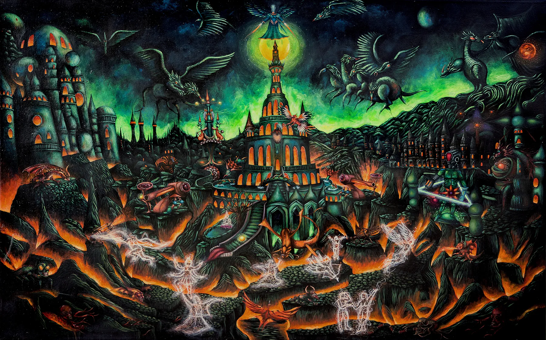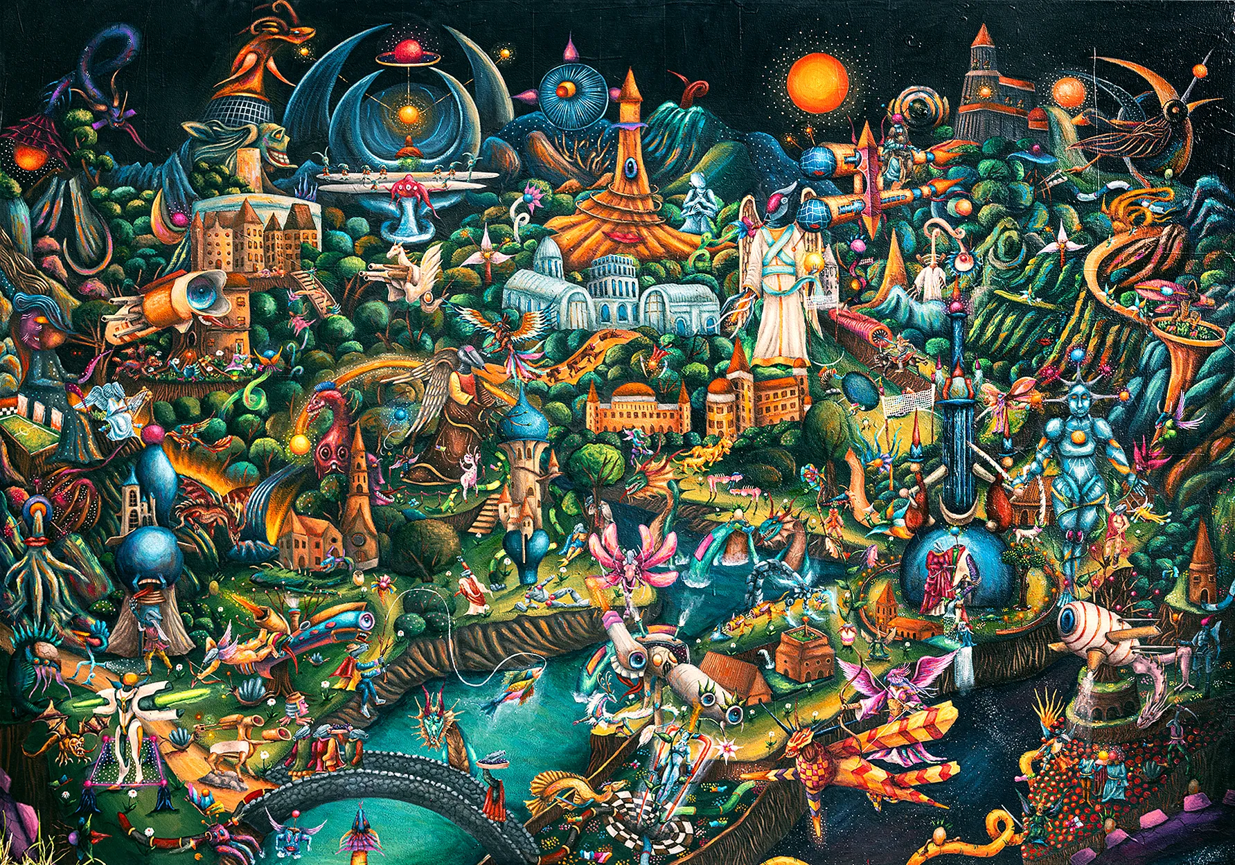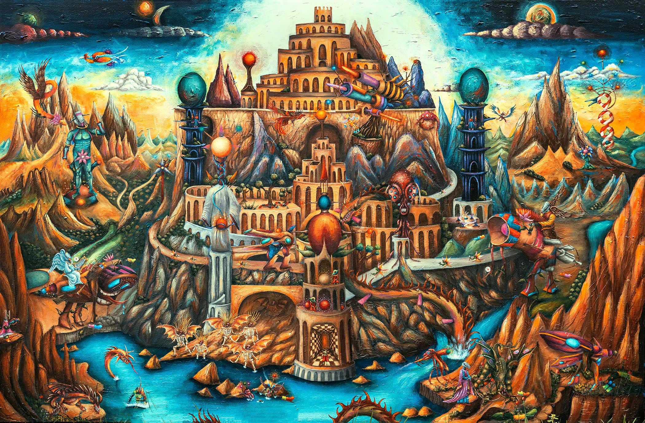 Jungijanski elementi dodatno artikuliraju strukturu ovog univerzuma. Arhetipovi nisu predstavljeni ikonografski, već funkcionalno: oni djeluju poput procesualnih jedinica unutar većeg psihičko-tehnološkog sistema. U Druškićevom radu sjena, animus ili arhetip heroja ne egzistiraju kao simboličke reference, već kao aktivni algoritmi koji generiraju tenzije i transformacije unutar Xantee. Tehnološki motivi, naročito hibridna bića, djeluju kao produžeci nesvjesnog, kao da je ono ljudsko prešlo u novu infrastrukturu — digitalno, mekatroničko ili kibernetičko tkivo koje proširuje kapacitete ljudske psihe. Digitalni nervni sistem? Ovakvo pozicioniranje tehnologije otvara pitanje: može li tehnološki sistem postati novo spremište arhetipskih obrazaca?