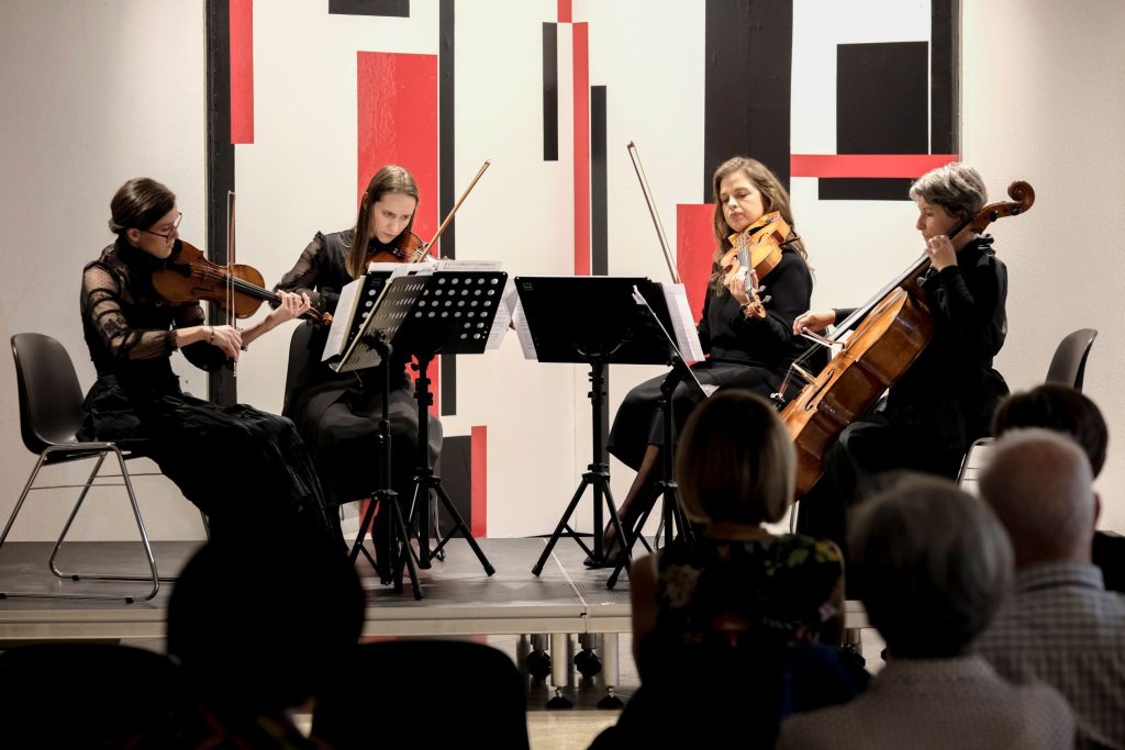 Sinoć je u Collegium Artisticumu održan prvi koncert trećeg ciklusa projekta „Muzikom kroz izložbu“, u kojem se vizuelna umjetnost i umjetnička muzika susreću u jasno profilisanom i kritički promišljenom dijalogu. Gudački kvartet SA Sinfonietta, polazeći od izložbe „SubDokumenta Sarajevo 2025“, koncipirao je koncert kao niz muzičkih refleksija na osam odabranih radova, čime je zvuk postao sredstvo tumačenja i proširivanja njihovih značenja. Uvodno izlaganje o koncepciji izložbe održao je Jasmin Duraković, direktor Sarajevo bijenala, naglasivši njenu višeslojnu narativnu strukturu.